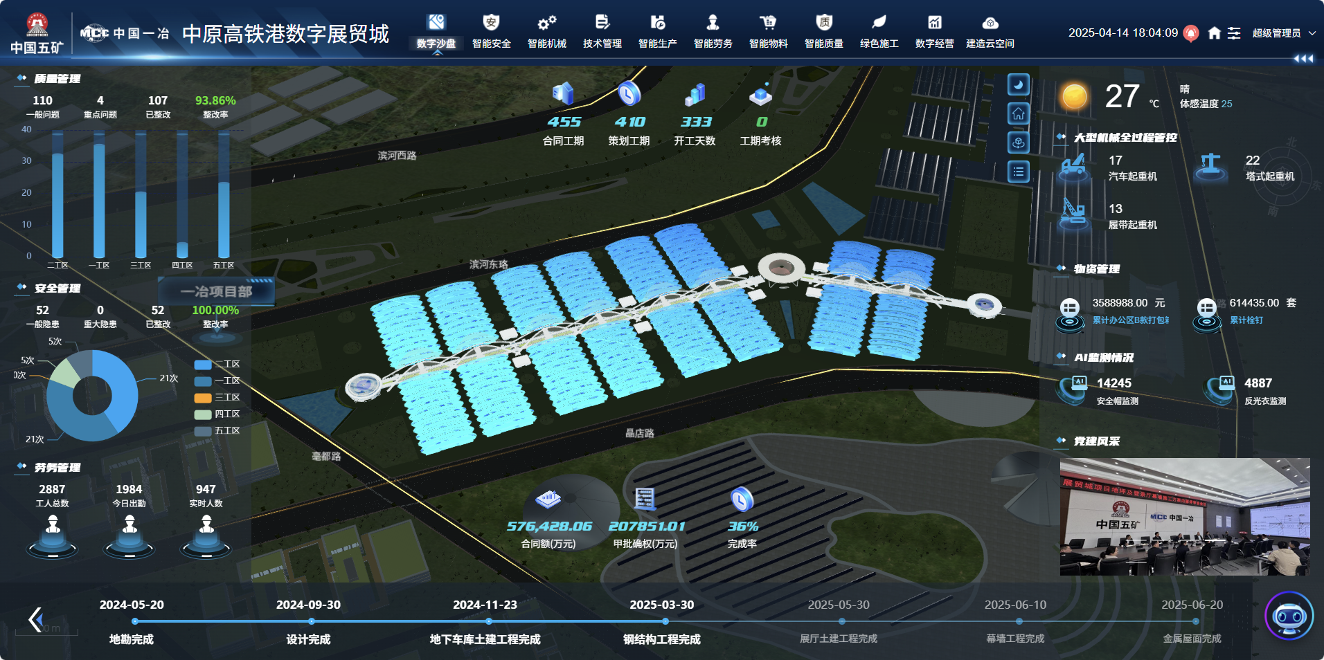 近日,由中国一冶自主研发、同济科技·慧之建提供技术支撑的“数字建造管控平台(一冶数建平台 V3.0)”在中央广播电视总台中文国际频道《今日环球》栏目中精彩亮相,引发行业广泛关注。该平台在中原高铁港数字展贸城项目中成功应用,以数字化手段支撑项目高效推进,向全球展现出中国建造在智能化、数字化方面的领先实力。